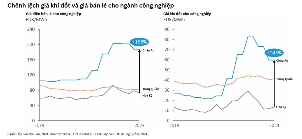 - Một kế hoạch chung về khử cacbon và cạnh tranh: Mặc dù các mục tiêu khí hậu của châu Âu rất tham vọng, giá năng lượng vẫn là một trở ngại lớn. Các công ty EU phải đối mặt với giá điện cao gấp 2-3 lần và giá khí đốt tự nhiên cao gấp 4-5 lần so với ở Mỹ. Báo cáo nhấn mạnh rằng quá trình khử cacbon phải trở thành một cơ hội tăng trưởng, chứ không phải là một gánh nặng. Điều này đòi hỏi một kế hoạch phối hợp để vừa giảm giá năng lượng cho người tiêu dùng cuối cùng, vừa tận dụng vị thế dẫn đầu của châu Âu trong một số công nghệ sạch.