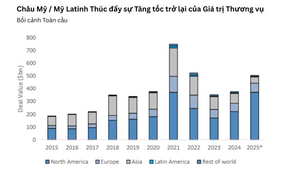 Sự phục hồi của thị trường VC không đồng đều trên các khu vực địa lý. Bắc Mỹ, đặc biệt là Hoa Kỳ, đã nổi lên như động lực tăng trưởng chính. Dữ liệu Quý 1/2025 cho thấy giá trị thương vụ tại Bắc Mỹ và Mỹ Latinh tăng lần lượt 17% và 12% so với quý trước, đóng góp phần lớn vào sự phục hồi toàn cầu. Ngược lại, thị trường châu Á tiếp tục ghi nhận sự sụt giảm trong quý thứ ba liên tiếp.